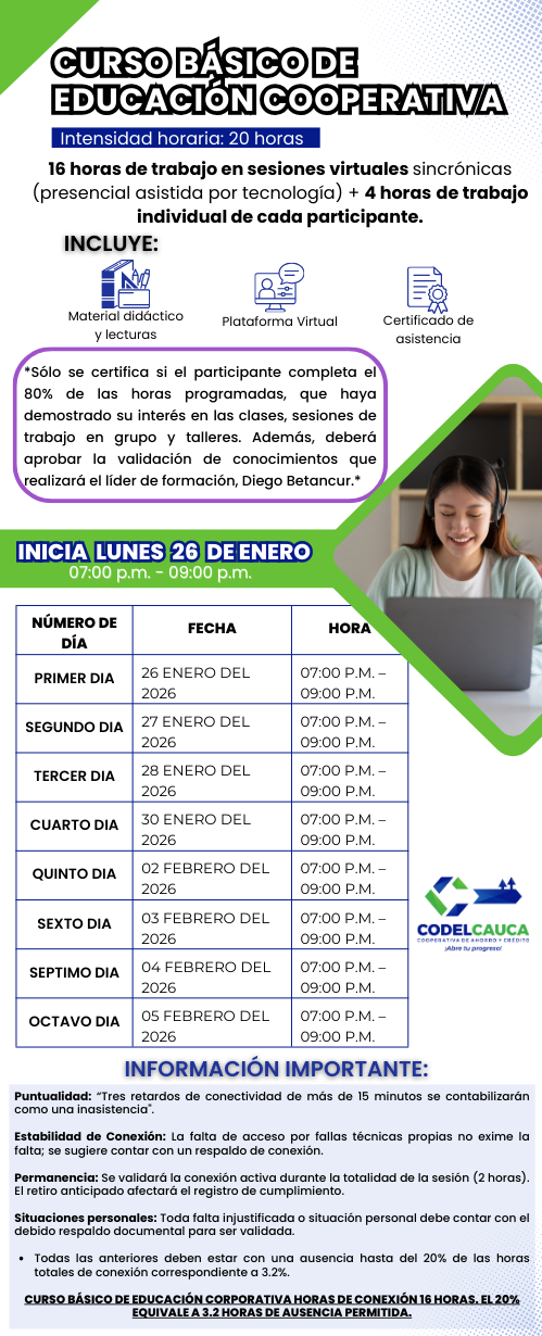 Hola👋, ¿en que puedo ayudarle? De acuerdo con la Ley Estatutaria 1581 de 2012 de Protección de Datos Personales, al Decreto 1074 de 2015, y a las demás normas concordantes, le informamos que, al iniciar la presente comunicación, usted, como titular de la información está aceptando que el uso de sus datos sean tratados de acuerdo a las finalidades descritas en la políticas de tratamiento de datos de la Cooperativa del Departamento del Cauca - CODELCAUCA, las cuales puede obtener mediante escrito dirigido a la dirección de correo electrónico pqrs@codelcauca.com.co.